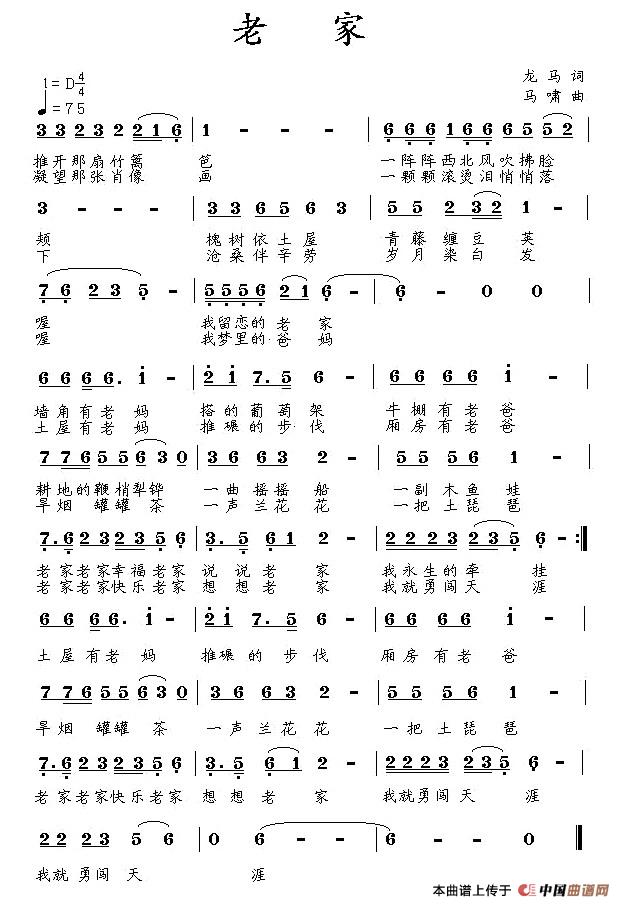 当前位置: 首页 民歌曲谱 二字以下 老家(龙马词 马啸曲)