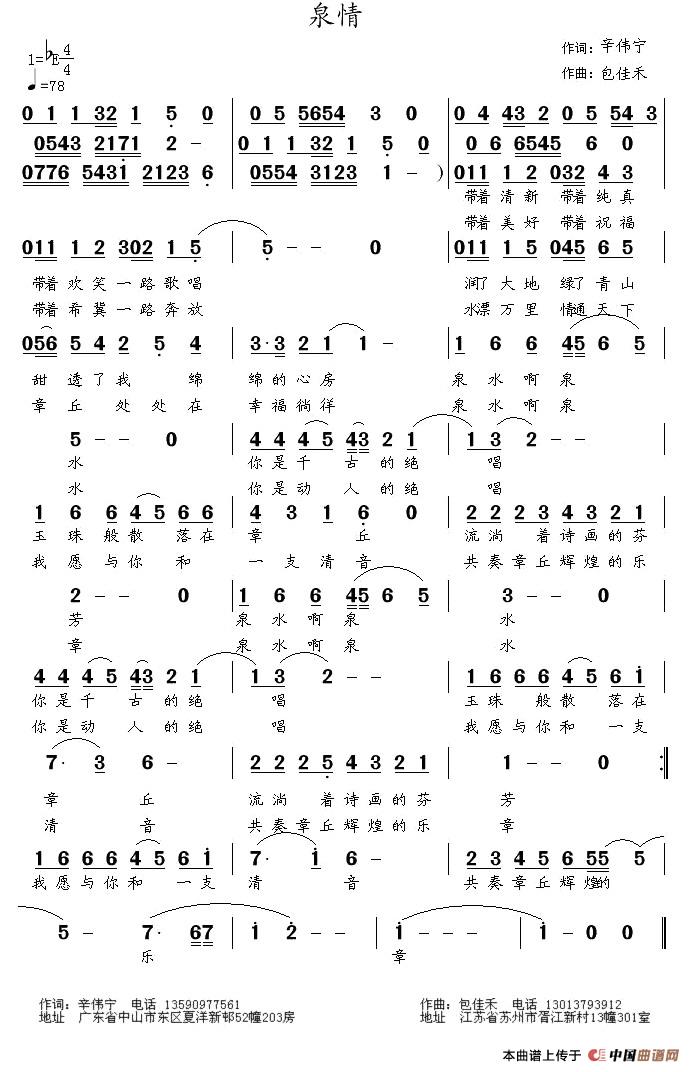 泉情(辛伟宁词 包佳和曲)