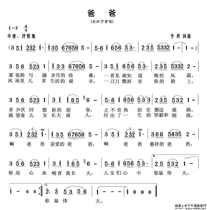 关于《爸爸》曲谱的评论