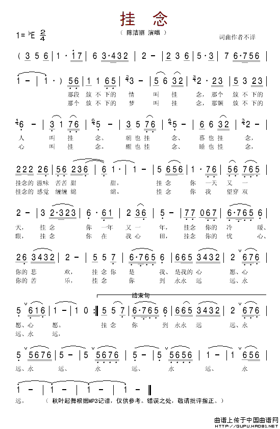 关于《挂念》曲谱的评论
