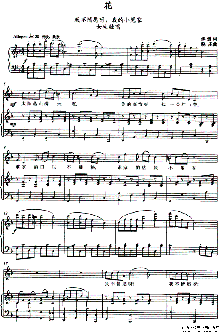 作词:洪道 作曲:晓庄 格式:五线谱 来源:《中国曲谱网》 上传:秋叶起舞