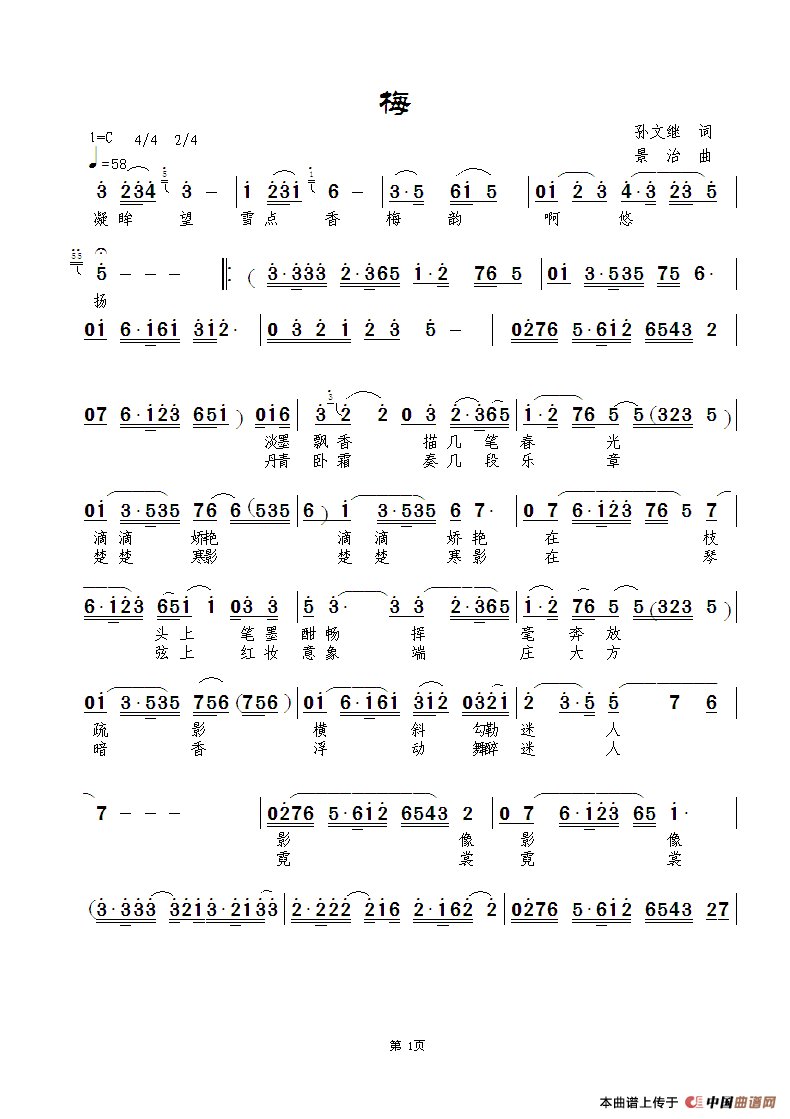 《梅》文本歌词