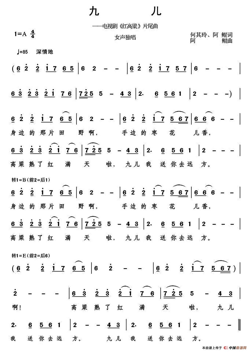 关于《九儿》曲谱的评论