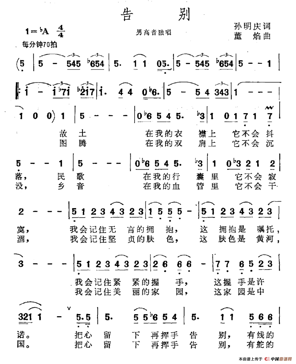 关于《告别》曲谱的评论