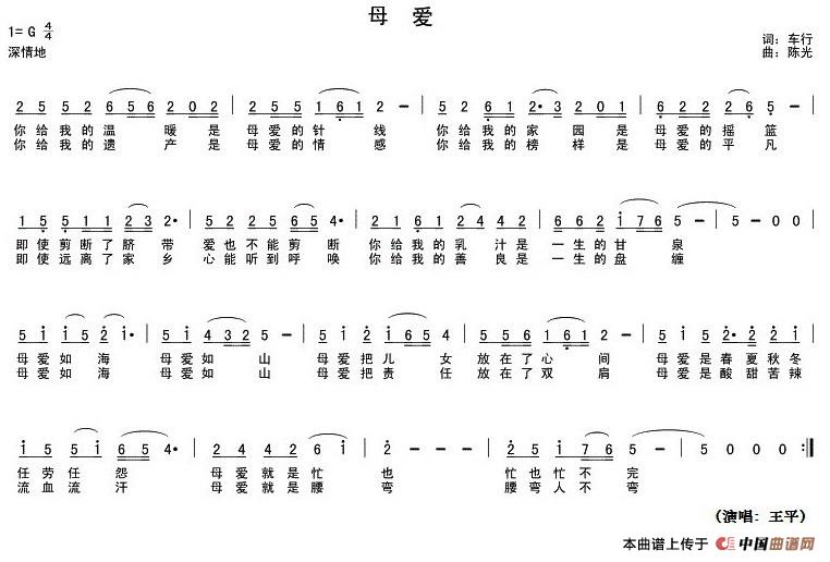 关于《母爱》曲谱的评论