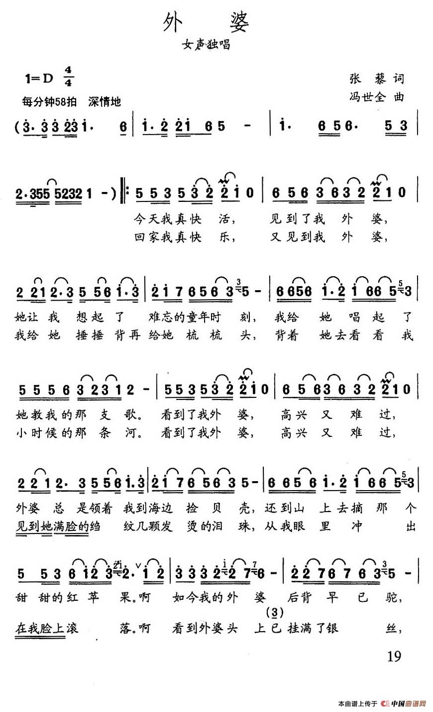 致谢:《中国曲谱网》衷心感谢作者老师馈赠原版歌谱!