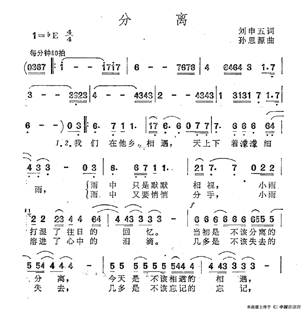 关于《分离》曲谱的评论