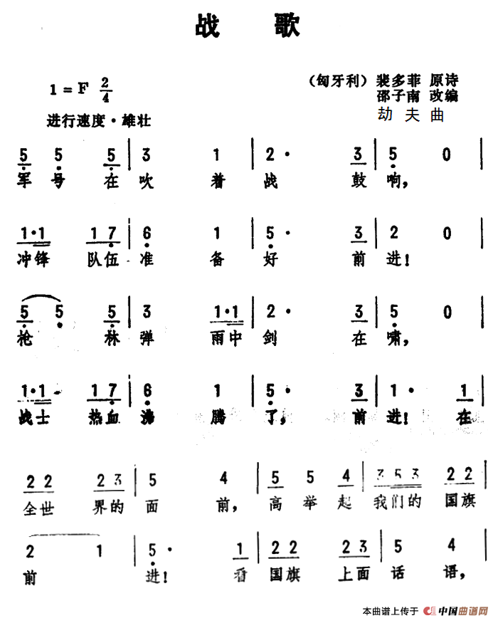 战歌([匈牙利]裴多菲原诗、邵子南改词 劫夫曲)