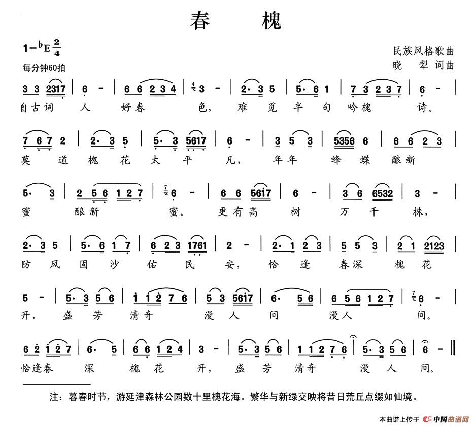 关于《春槐》曲谱的评论
