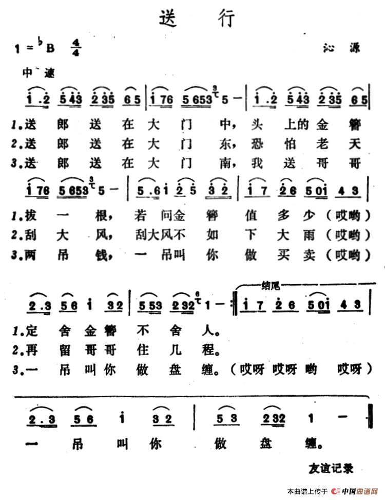 关于《送行》曲谱的评论