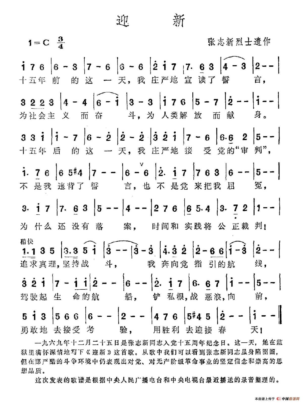 作词:张志新 作曲:张志新 来源:《中国曲谱网》 上传:沉舟侧畔过