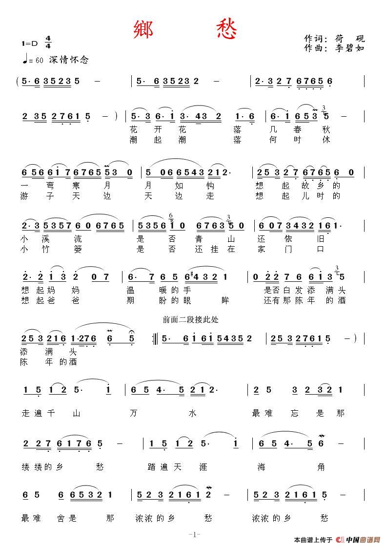 关于《乡愁》曲谱的评论