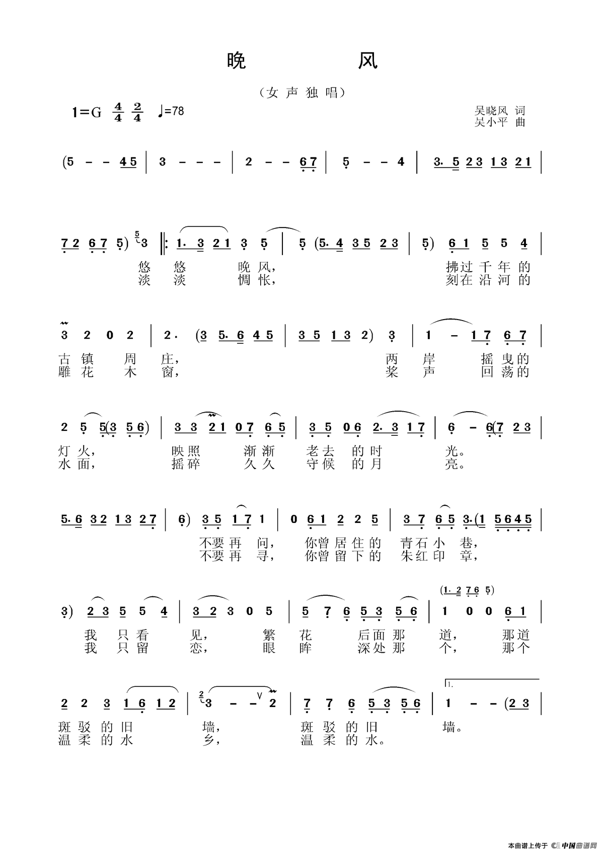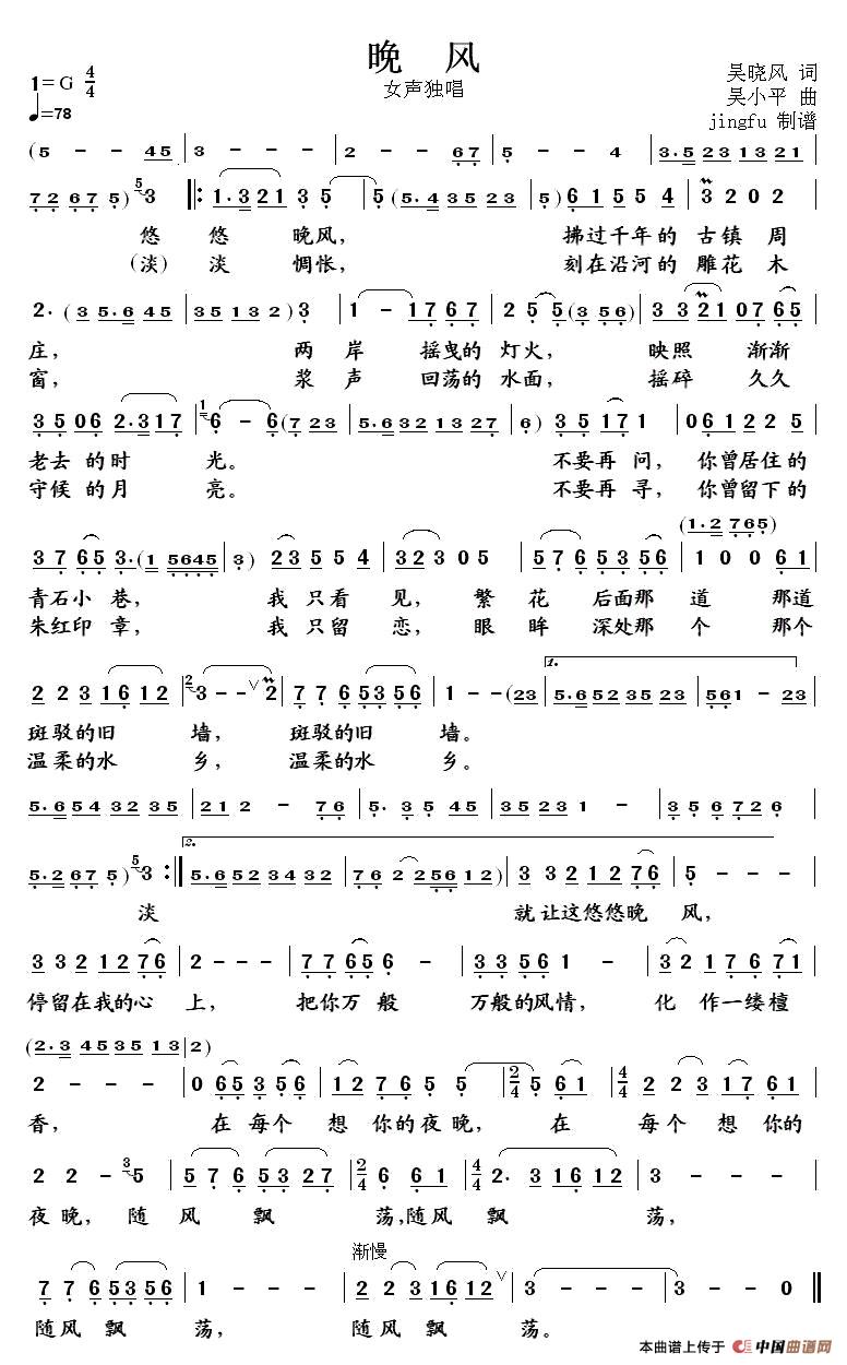 关于《晚风》曲谱的评论