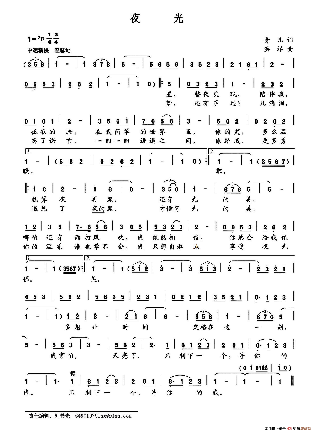 关于《夜光》曲谱的评论