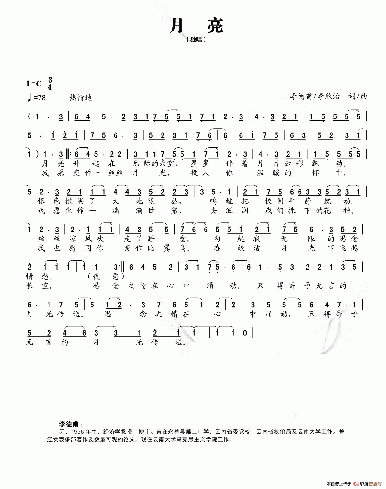 关于《月亮》曲谱的评论