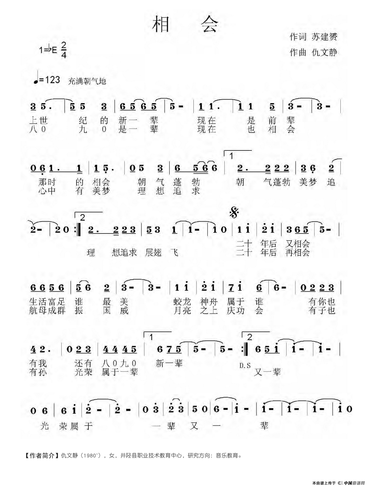 作词:苏建赟 作曲:仇文静 来源:《中国曲谱网》 上传:沉舟侧畔过