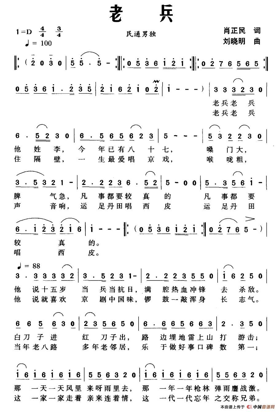 当前位置: 首页 民歌曲谱 二字以下 老兵(肖正民词 刘晓明曲)