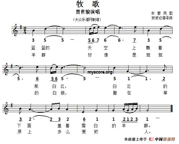 关于《牧歌(东蒙民歌)》曲谱的评论