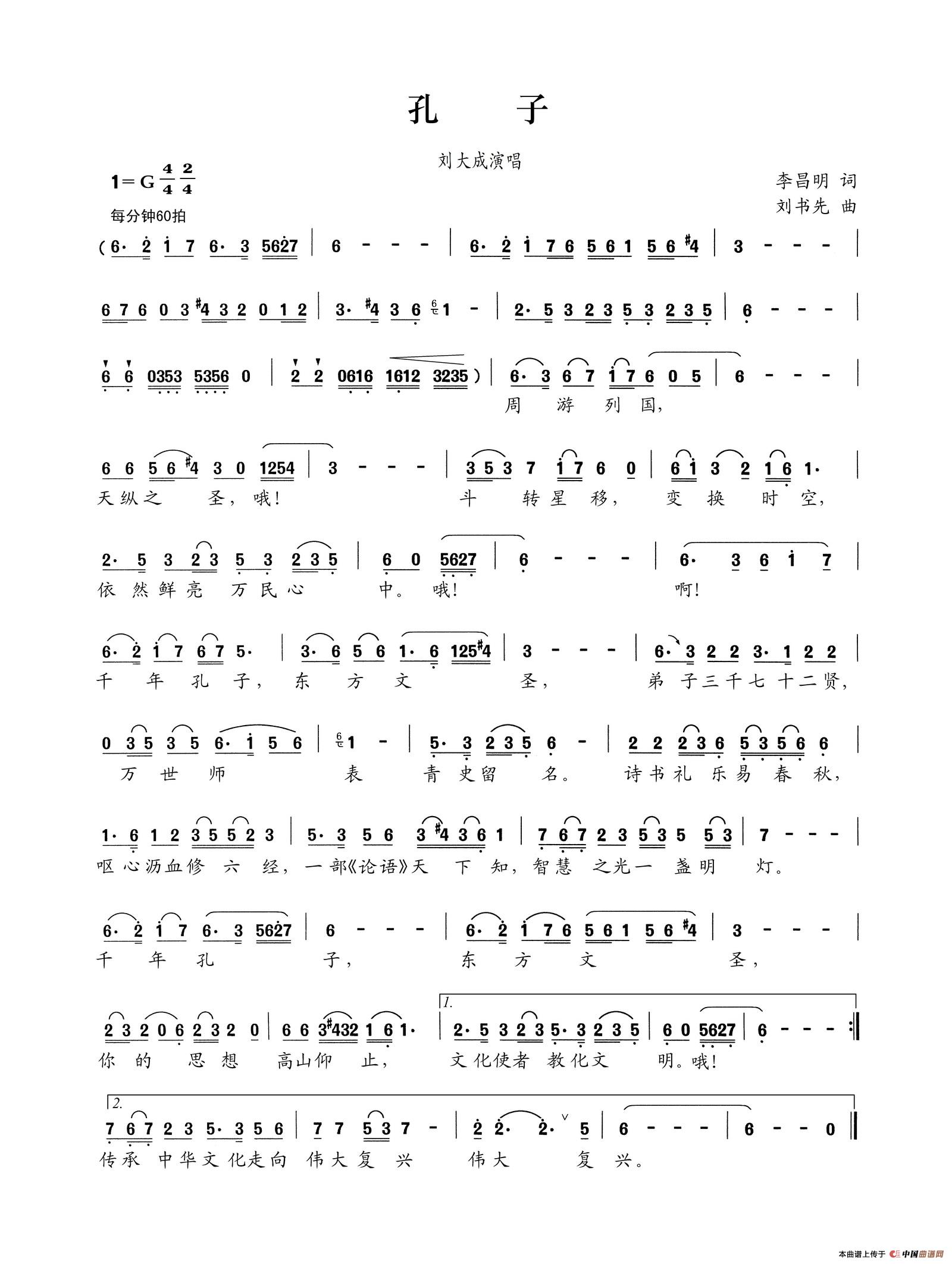 《孔子》文本歌词