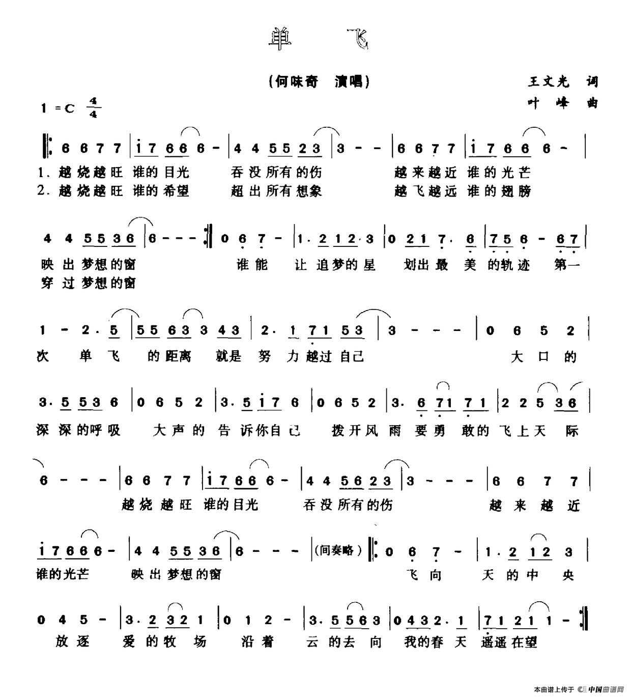 关于《单飞》曲谱的评论