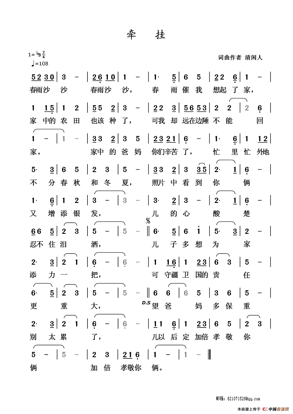 关于《牵挂》曲谱的评论