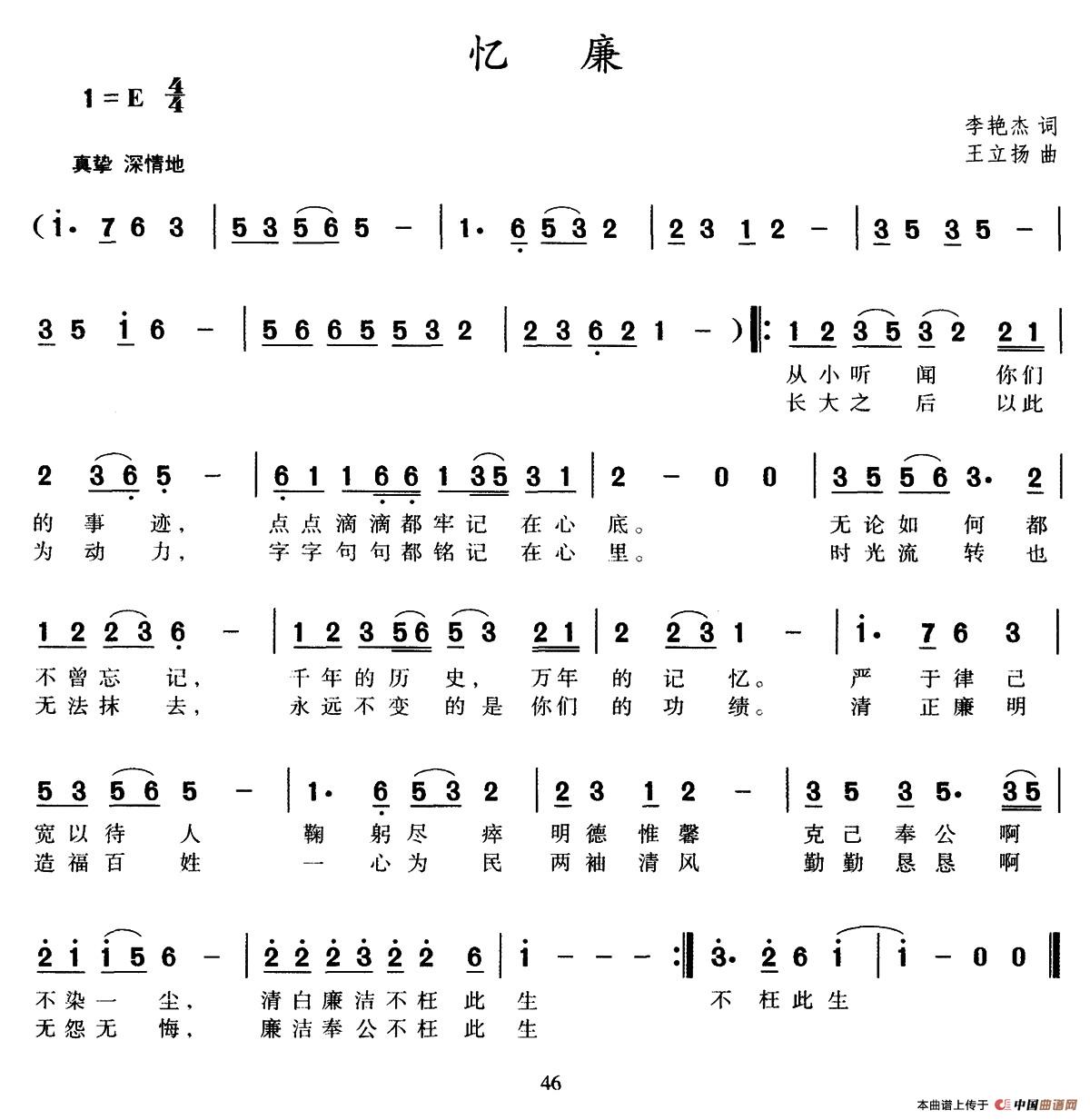 作词:李艳杰 作曲:王立扬 来源:《中国曲谱网》 上传:秋叶起舞