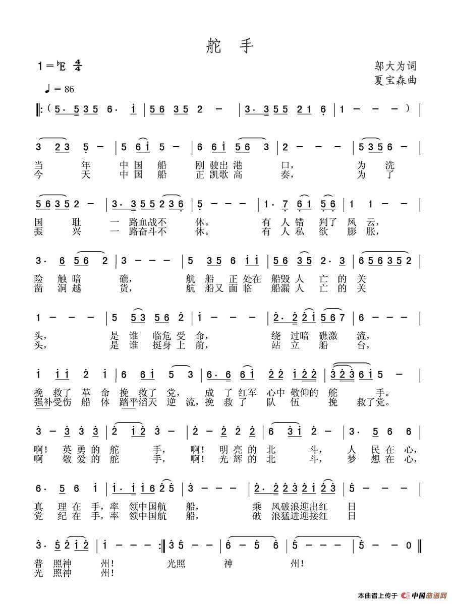 致谢:《中国曲谱网》衷心感谢作者老师馈赠原版歌谱!