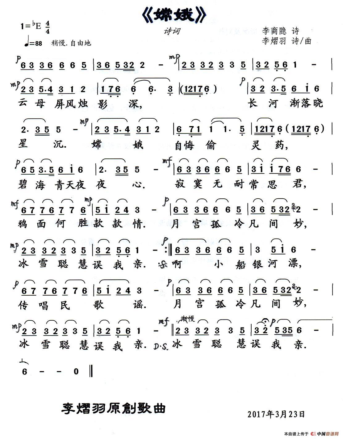 关于《嫦娥》曲谱的评论