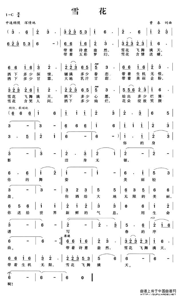 作词:曾春 作曲:曾春 格式:简谱 来源:转自《曲谱歌谱大全》 上传:秋叶起舞