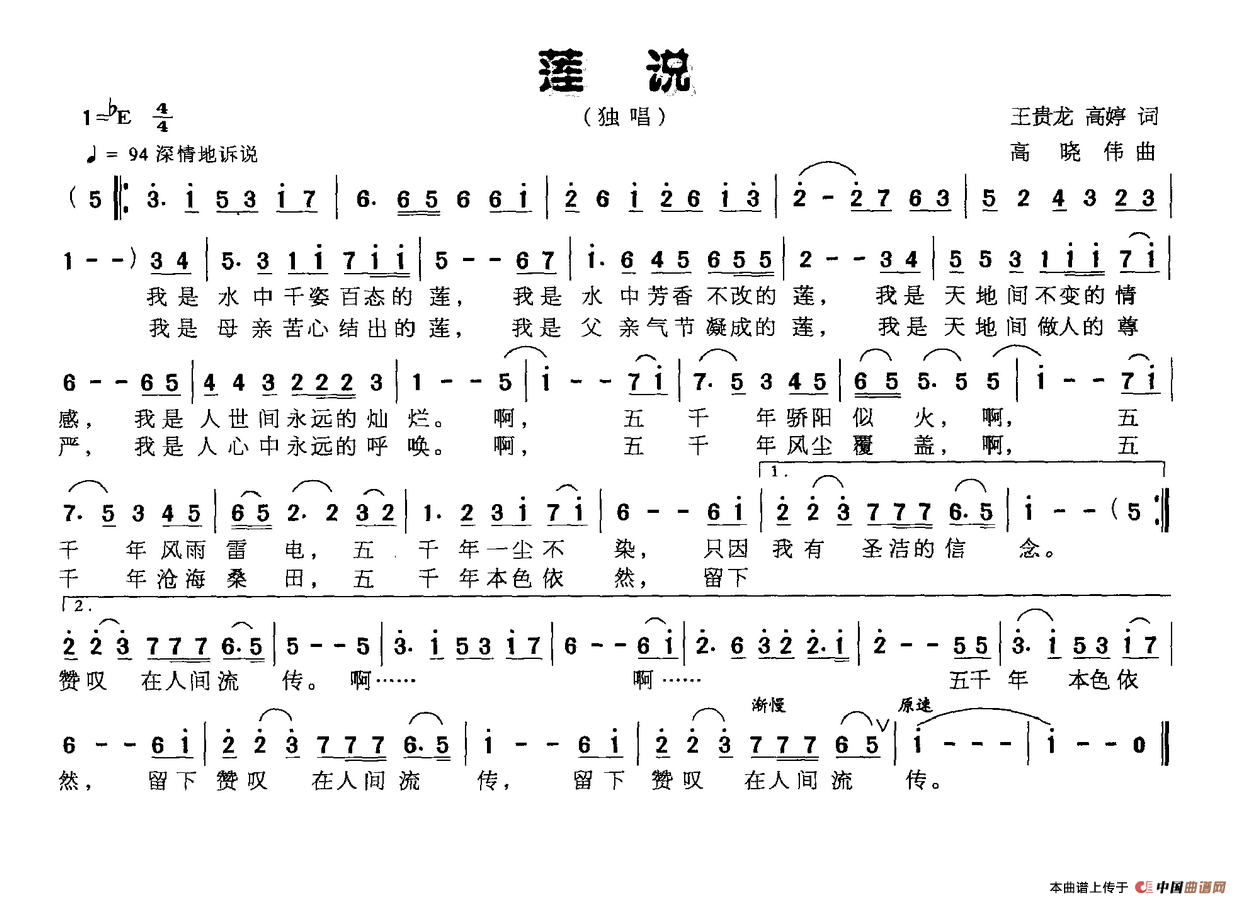 作词:王贵龙 高婷 作曲:高晓伟 来源:《中国曲谱网》 上传:沉舟侧畔过