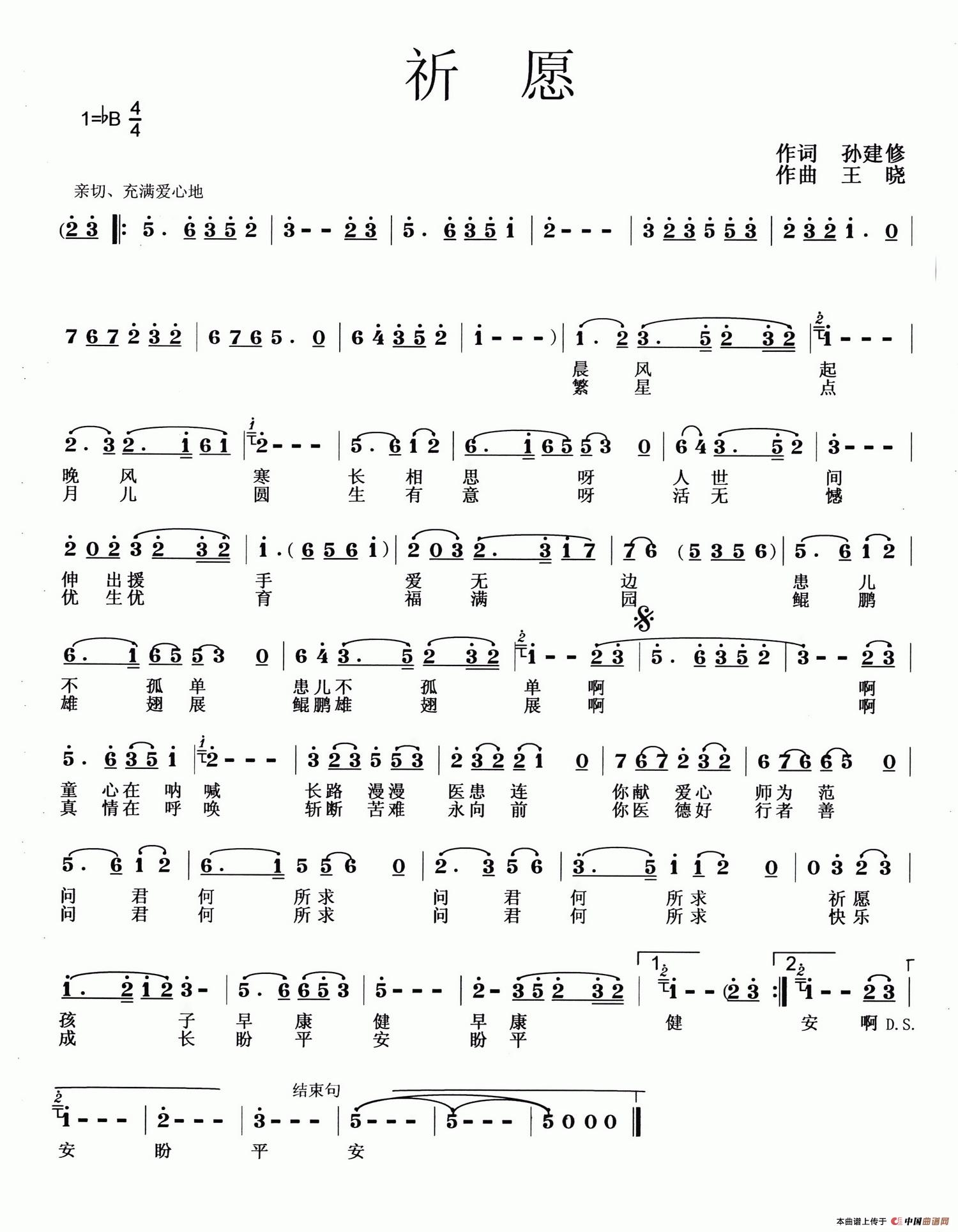 关于《祈愿》曲谱的评论