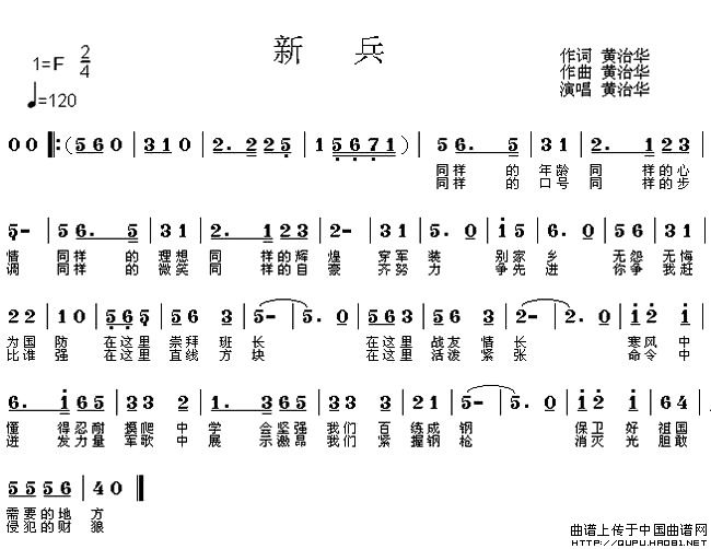 作词:黄治华 作曲:黄治华 格式:简谱 来源:转自《中国军网》 上传:秋叶起舞