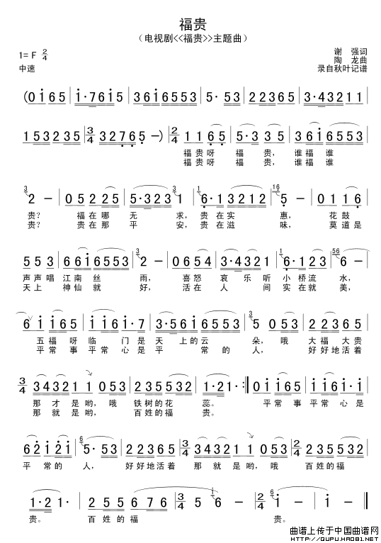 关于《福贵》曲谱的评论