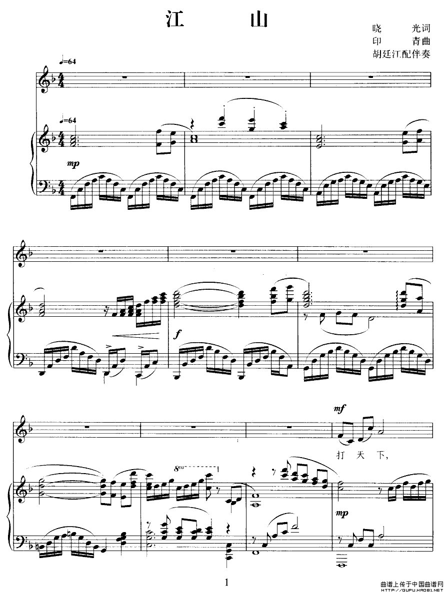 提示:在曲谱图片上单击右键,选择“图片另存为...”即可将曲谱保存到您的电脑中,打印时候可将图片插入到WORD中,调整合适大小打印即可。