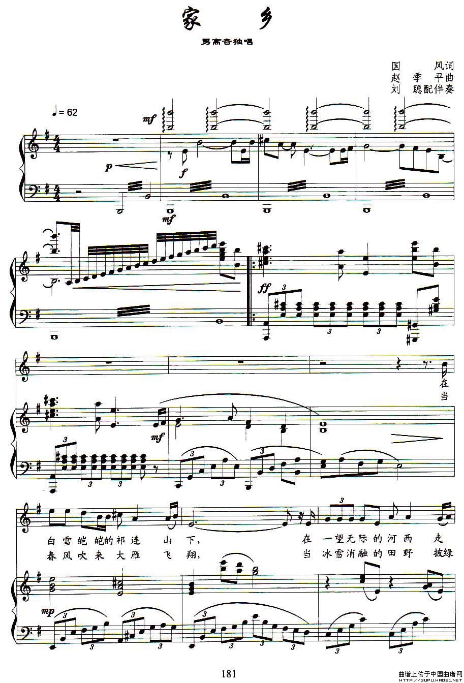 关于《家乡》曲谱的评论