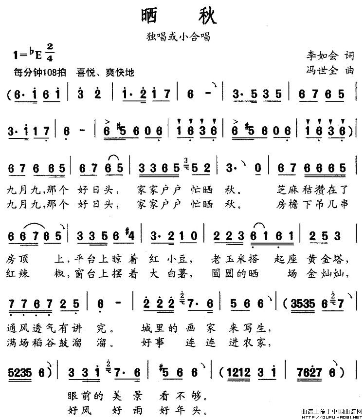 关于《晒秋》曲谱的评论