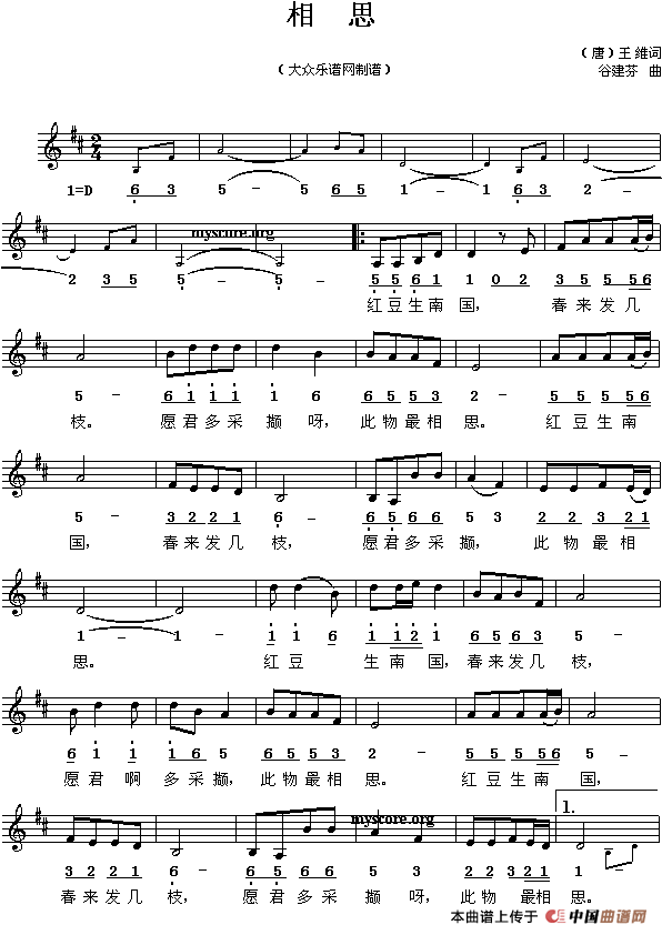 ![相思([唐]王维词 谷建芬曲、线简谱混排版)(1)_原文件名:1.gif](/Public/Uploads/d/c/51676b3fdaec0.gif)