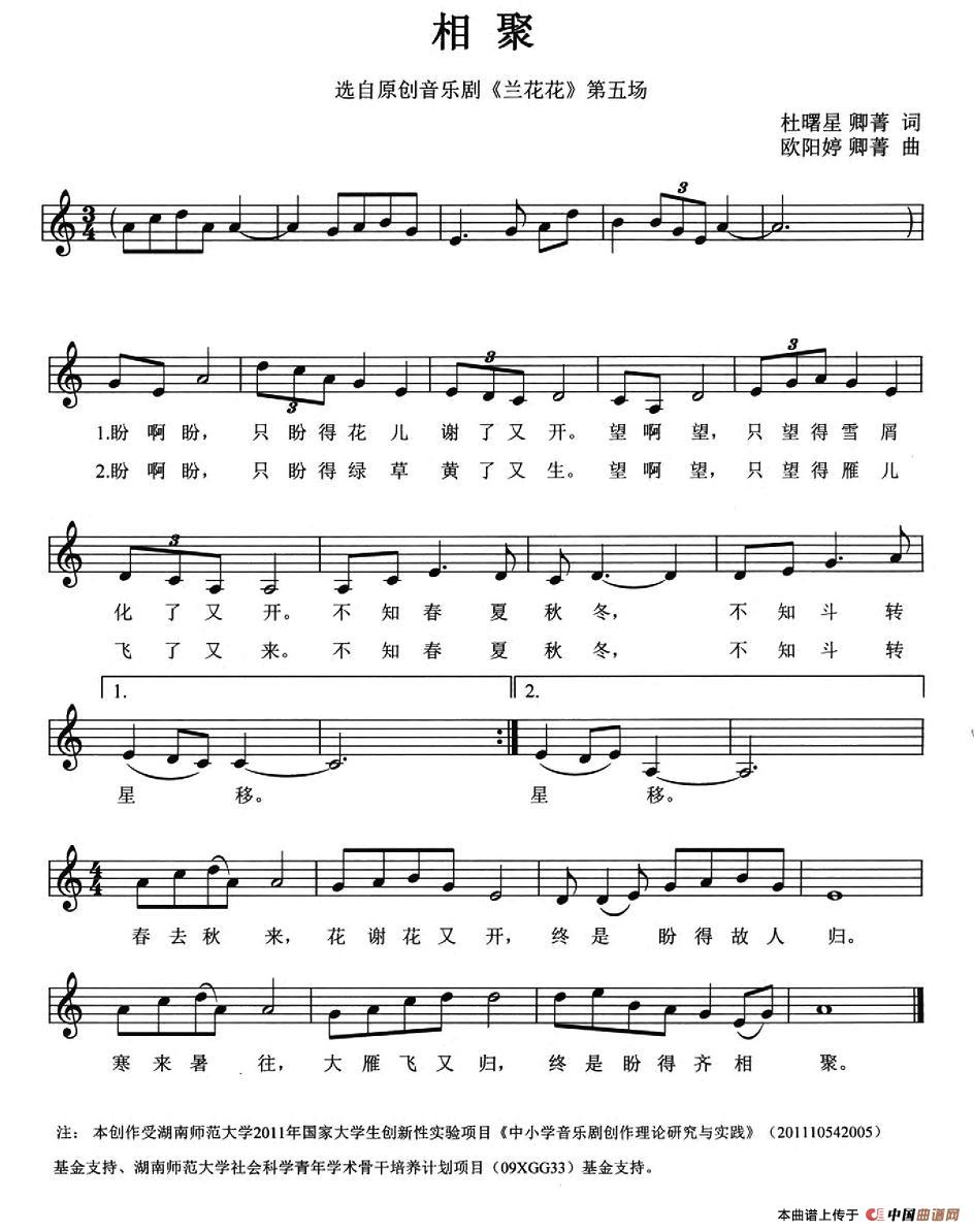 相聚(选自原创音乐剧《兰花花》、五线谱)