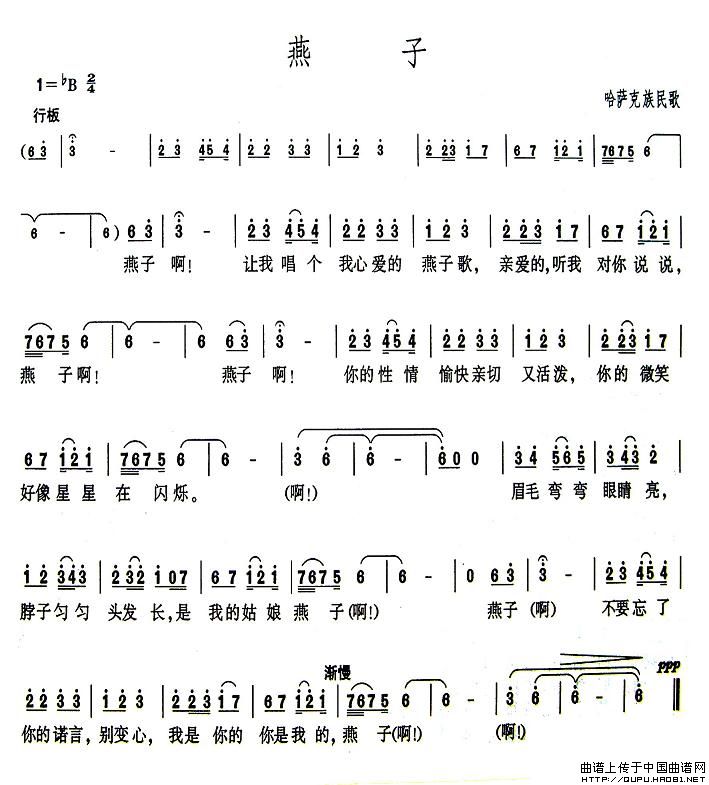 我想看到阎维文演唱《燕子》的完整简谱。搜索查找了几天,都未找到 。哪位能帮下忙,谢谢! [回复]
