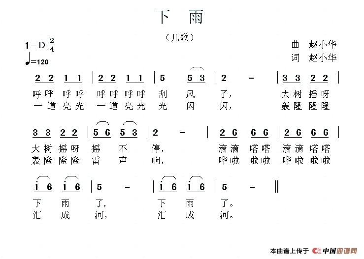 此曲谱很受少儿喜欢,歌词根据自然现象浅显易懂,曲调欢快。 [回复]