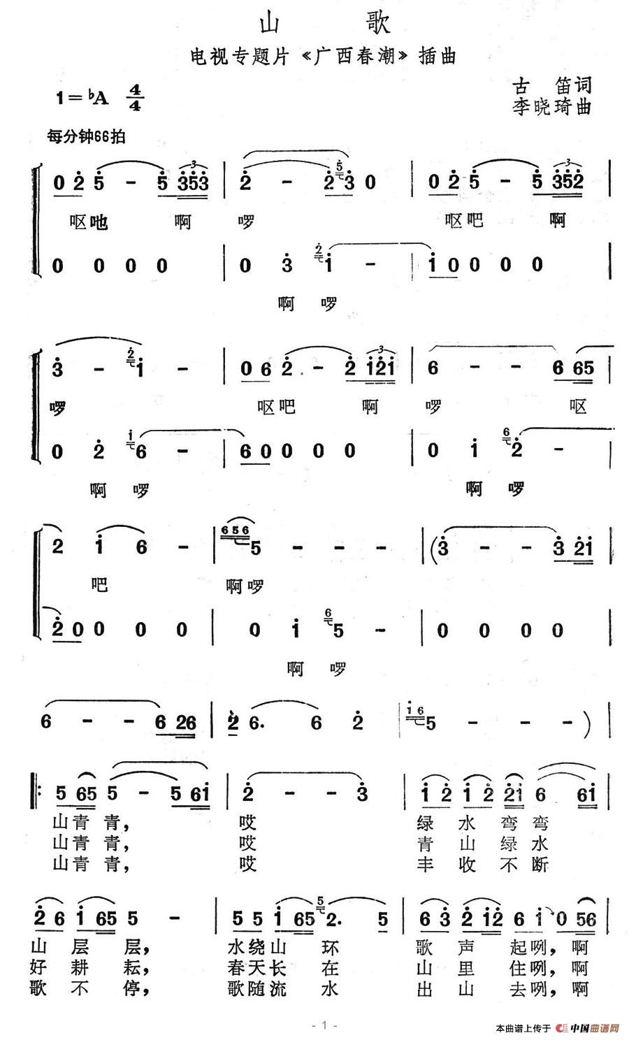 关于《山歌》曲谱的评论