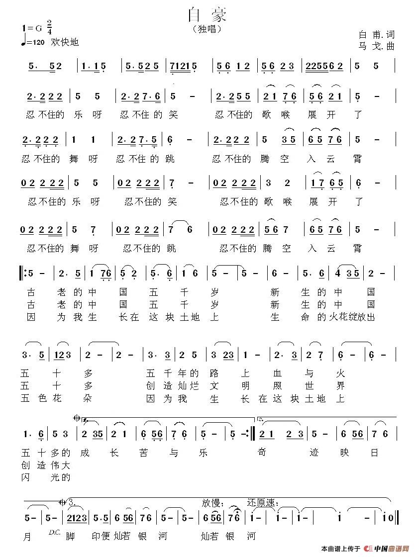 关于《自豪》曲谱的评论