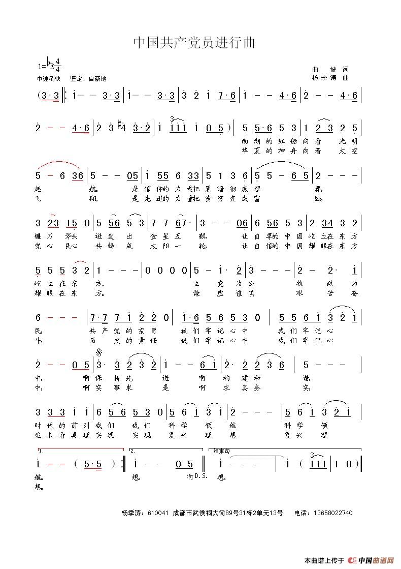 关于《中国共产党员进行曲》曲谱的评论