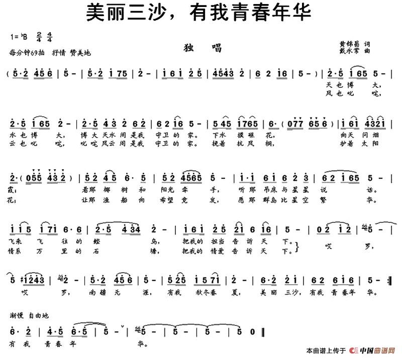 关于《美丽三沙,有我青春年华》曲谱的评论