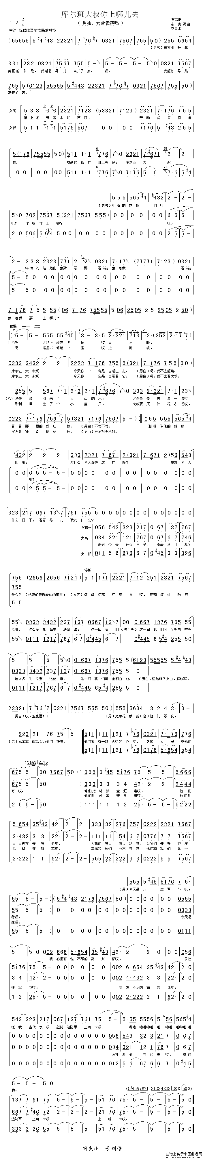 关于《库尔班大叔你上哪儿去》曲谱的评论