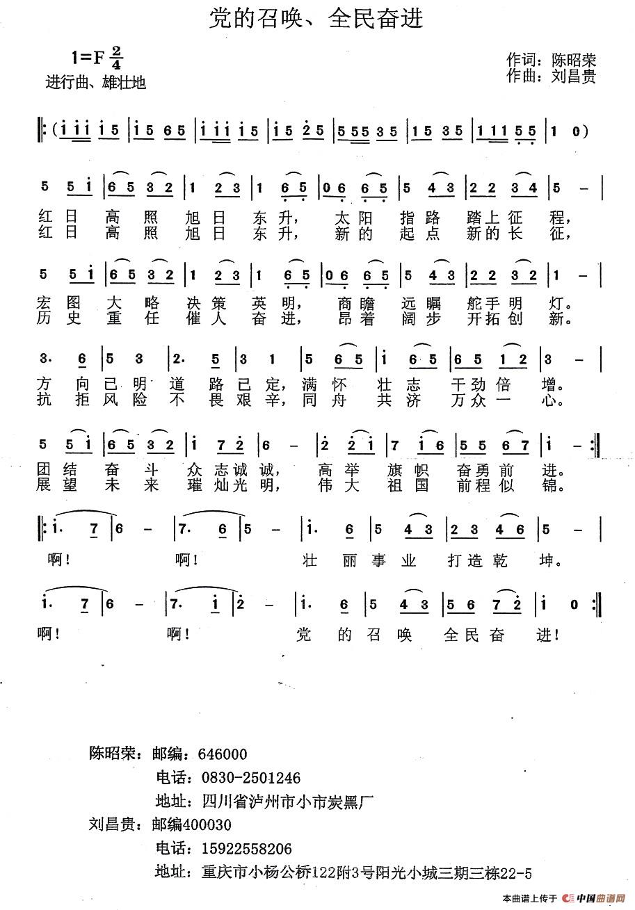 关于《党的召唤、全民奋进》曲谱的评论