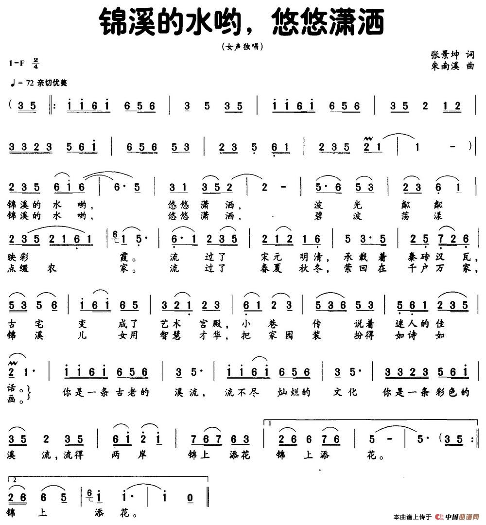 关于《锦溪的水哟,悠悠潇洒》曲谱的评论