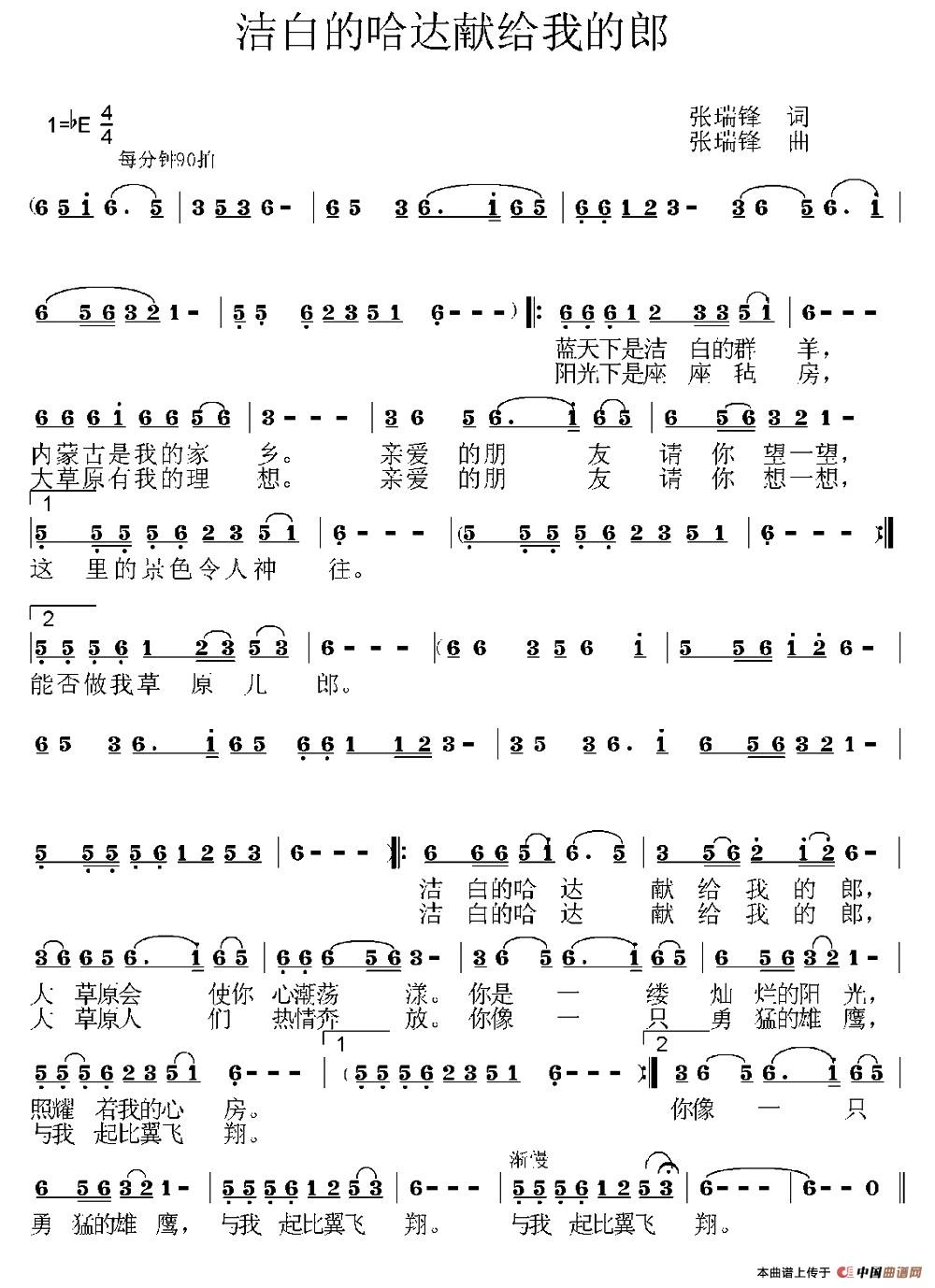 关于《洁白的哈达献给我的郎》曲谱的评论