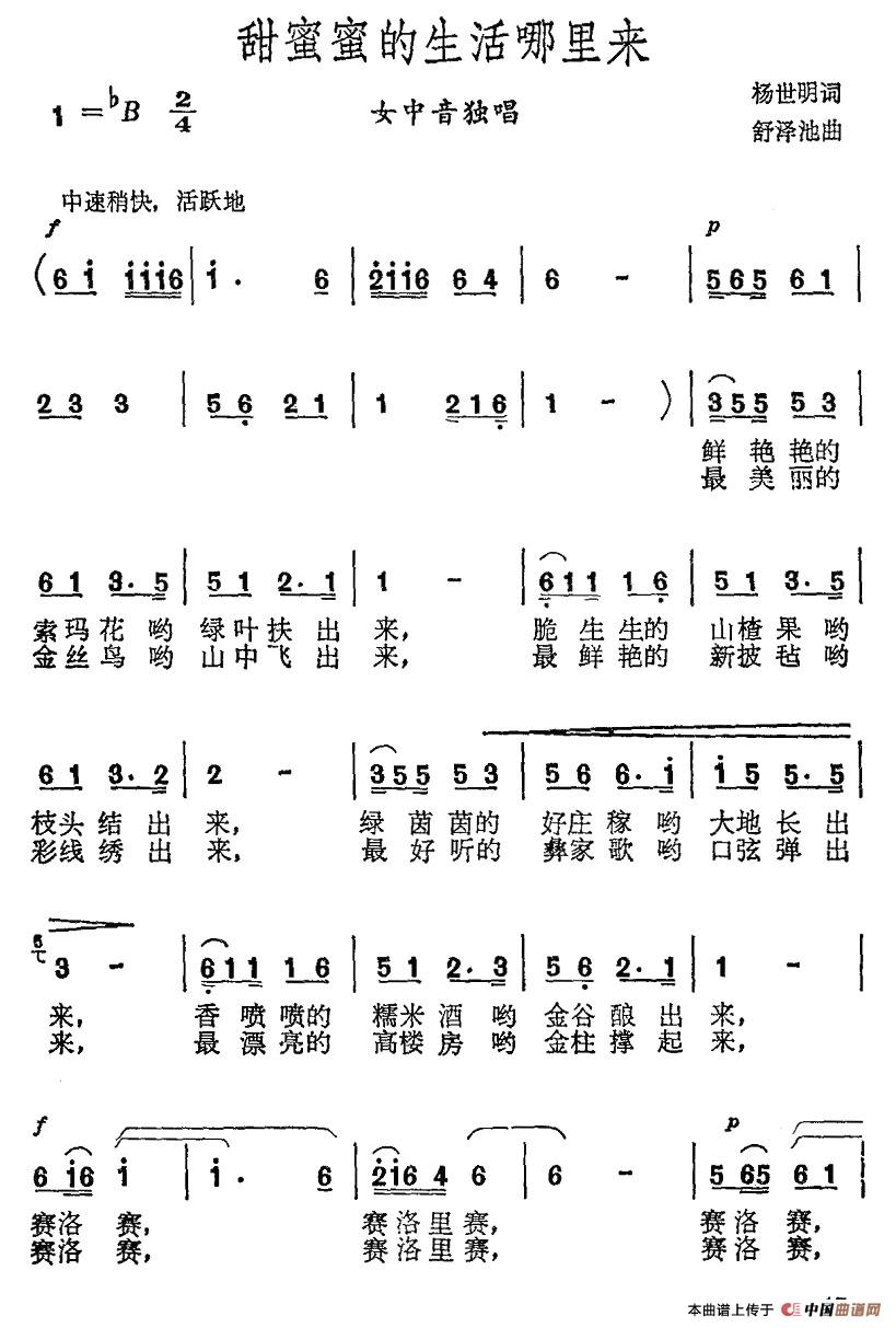 关于《甜蜜蜜的生活哪里来》曲谱的评论