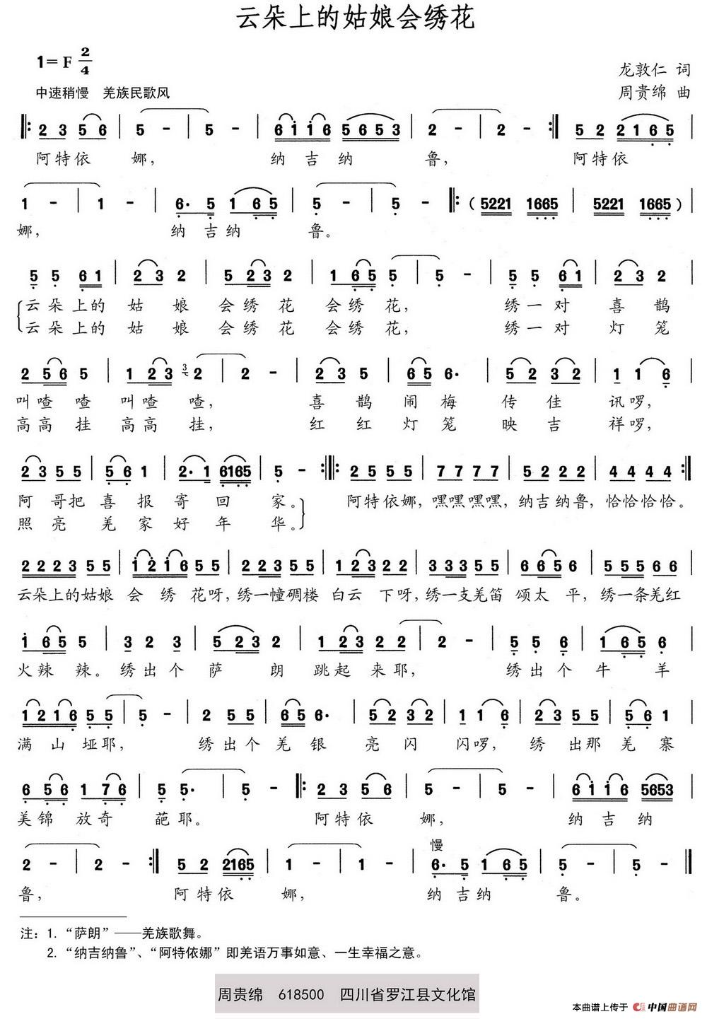 关于《云朵上的姑娘会绣花》曲谱的评论